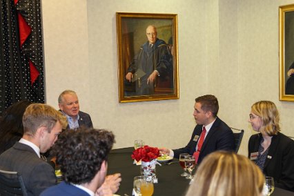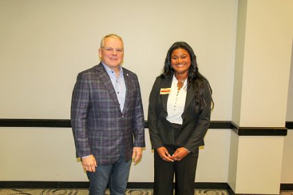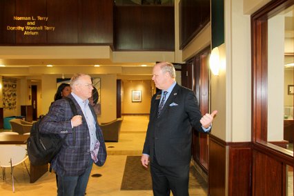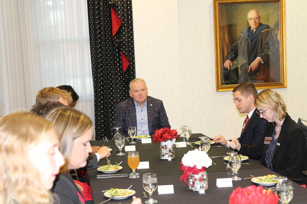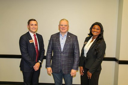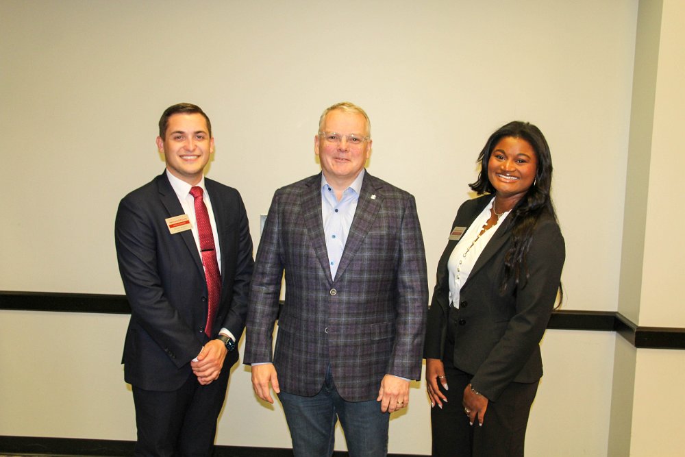 At the Fall Speaker event, the SBLA team invites a business professional to talk to business students about their experiences in the business world. The Fall Speaker for this year, Jim Fowler, talked School of Business students about his role as the CTO of Nationwide, and the impact that AI will have on the future of business.